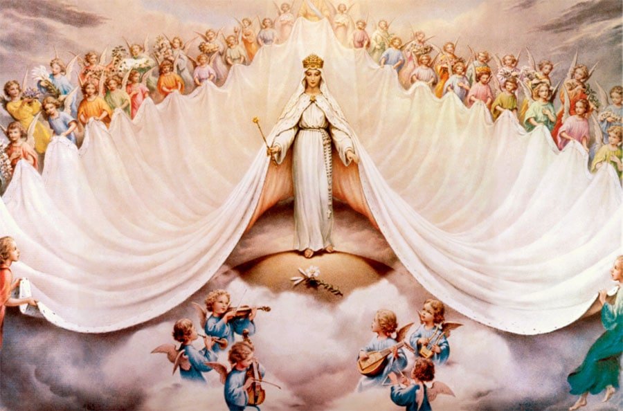 بك تتهلل السموات، ويغمر الفرح كلّ الملائكة ورؤساء الملائكة. بك تُطرَد الشياطين، و يسقط المجرّب إلى الجحيم. بك يُقبَل الجنس البشري الخاطئ في السماء.