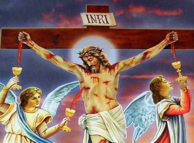 يا يسوع المصلوب، إني أعبد دمك الثمين وأقبّل جروحاتك واحدة واحدة، وأنوي أن أسكب فيها كل محبّتي وعباداتي وتكفيراتي. فليكن دمك الثمين نوراً في الظلمات، وتعزيةً عند الآلام، وقوّةً في الضعف، وغفراناً عند الوقوع في الخطيئة، وعوناً في التجارب، ومحامياً في المخاطر، وسنداً في ساعة الموت، وأجنحة تنقلنا جميعاً من الأرض إلى السماء. آمين.