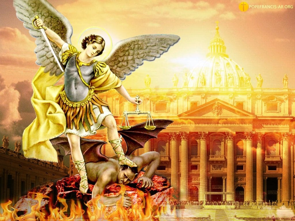 أيتها المُعظمة مريم العذراء سلطانة السماوات وسيدة الملائكة … أنتِ يامن نلتِ من الله قدرة لسحق رأس الشيطان نتوسل إليكِ بخضوع أن ترسلي الجنود السماوية الى العالم لكي يطاردوا تحت أمرتكِ و بقدرتكِ وبقوة الله الأبالسة و يسحقوهم في كل زمان و مكان و يقمعوا وقاحتهم … آمين